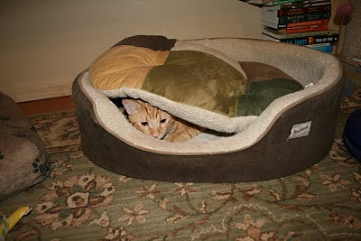 I have been reluctant to post this picture and introduce this new member of the Collins family but I think the time has come. This is Friskie, my mother-in-law's cat, and she came to live with us last month when my mother-in-law could no longer care for herself and was admitted to an assisted living group home.
